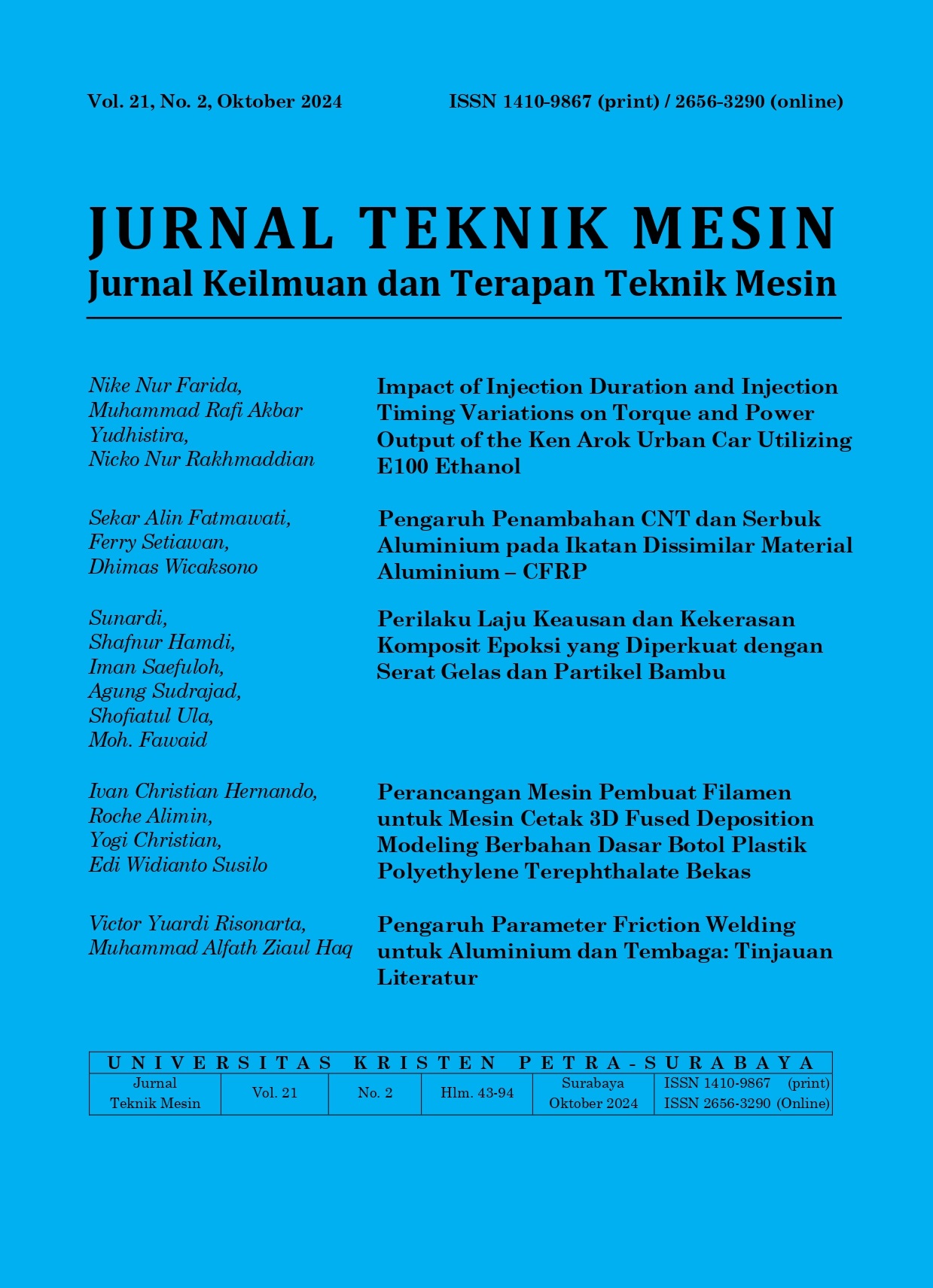 Mechanical Engineering Journal (JTM) is a peer-reviewed journal for Scientific and Applied Mechanical Engineering. This journal has been accredited as SINTA 3. This journal is published by The Department Mechanical Engineering, Petra Christian University, Indonesia. The scope of JTM is specific topics in mechanical engineering, i.e. automotive, design, structure, industrial, energy conversion, manufacture, materials science and metallurgy.