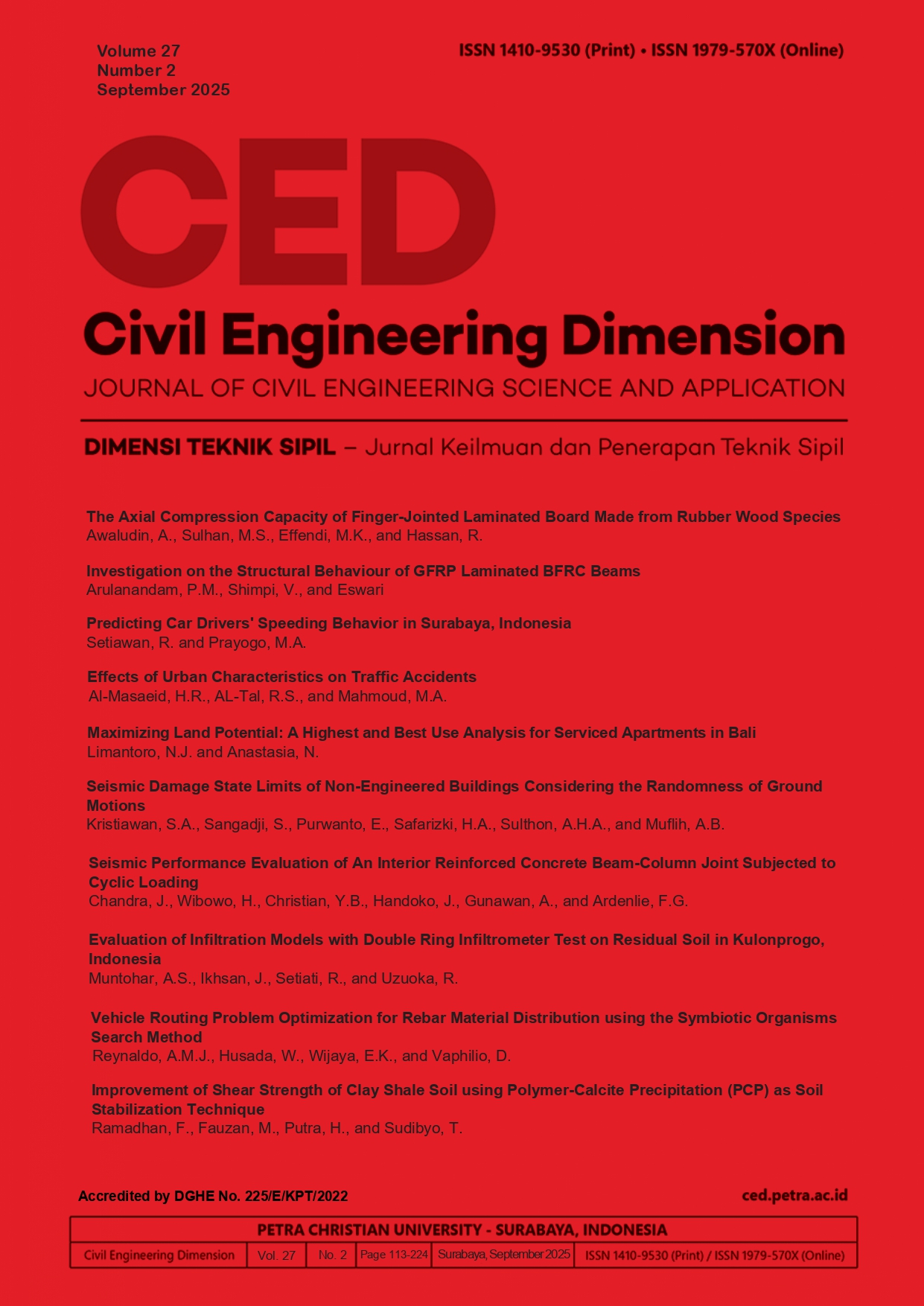 Effendi, M.K. and Awaludin, A., Nonlinear Finite Element Analysis of Flexural Laminated Veneer Lumber (LVL) Sengon Slender Beam, Civil Engineering Dimension, 24(2), 2022, pp. 85-92. https://doi.org/10.9744/CED.24.2.85-92